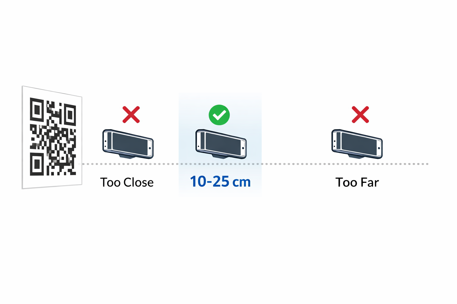 Los fallos de escaneo más comunes se deben a la distancia (mantén el teléfono a 15–30 cm), poca iluminación o una lente de cámara sucia.
