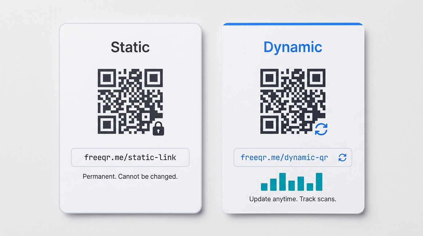 Un código QR estático almacena los datos de forma permanente en el propio código y no se puede cambiar tras su creación. Un código QR dinámico utiliza una URL de redireccionamiento, por lo que puedes actualizar el destino y rastrear los escaneos sin tener que volver a imprimirlo. Esta distinción es lo más importante que debes entender antes de crear uno.